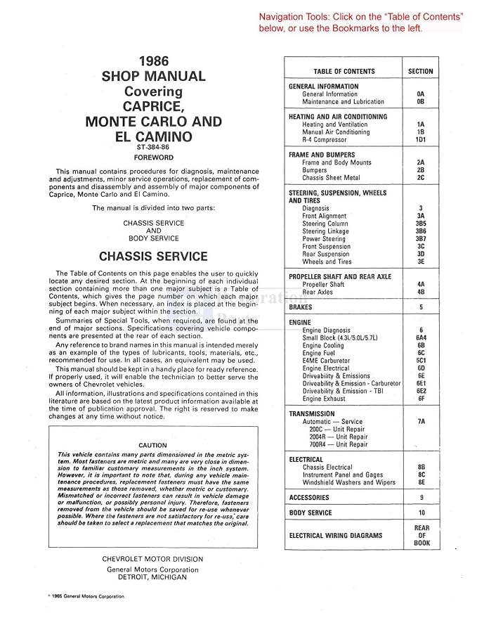 Amazon Com Bishko Automotive Literature 1986 Caprice El